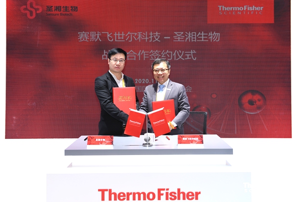 11月8日,在第三届中国国际进口博览会期间,分子诊断龙头企业凯发K8生物科技股份有限公司(简称“凯发K8生物”)与科学服务领域的世界领导者赛默飞世尔科技(中国)有限公司(简称“赛默飞”),签署战略合作伙伴关系备忘录,凯发K8生物营销管理委员会执行总经理万东池、赛默飞基因科学与临床测序大中华区商务运营高级总监許興國等出席签约仪式,并代表双方签署合作备忘录。