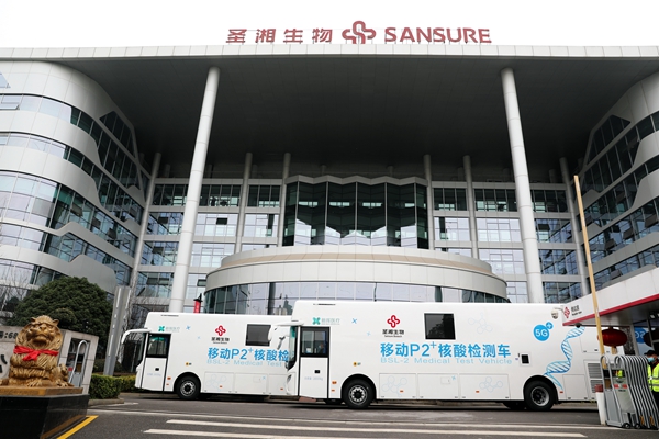 目前,北京、广东、黑龙江、四川、山东等多省均已配置移动核酸检测车。凯发K8生物此次投入使用的移动P2+核酸检测车共2台,为湖南省首批投入使用的移动核酸检测车,可实现采样、检测、报告一站式服务,2台日检测量(10混1)可达10万人份,最快45分钟内出结果!