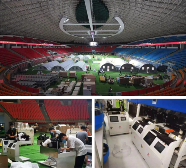 在主战场广州,凯发K8生物工程师们全力以赴参与到广州市政府统一协调各单位搭建的气膜方舱实验室工作中。6月1日,广东首个气膜方舱实验室在广州体育馆正式投入使用;6月2日晚,4个气膜方舱实验室全面投入使用,核酸检测日产能达到12万管,可实现全天候收样检测,提高核酸检测效率。