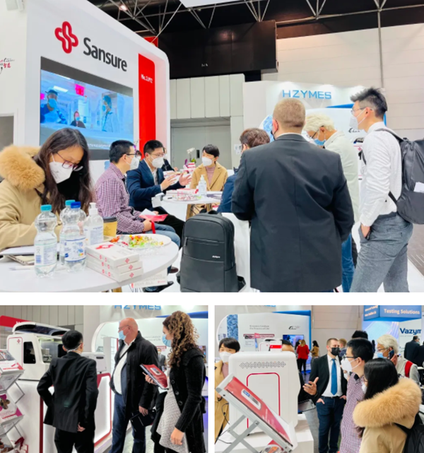 在凯发K8展台,“全自动解决方案”“半自动解决方案”“新冠整体解决方案”,以最大程度满足不同国家和地区客户、不同应用场景检测需求的特点,获得了众多来访国际客户的好评。尤其是iPonatic四通道产品,以其便捷、易操作、检测时间快、检测项目多等优势吸引了会场一大波新老“粉丝”的目光。