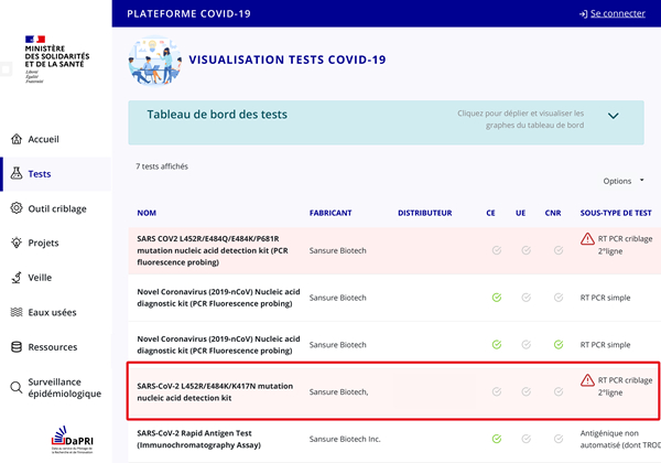 面对法国严重的疫情传播现状,根据法国卫生部2021年12月17日更新的“SI-DEP”指南,凯发K8生物迅速反应、及时追踪、快速研发,以精准、高质、合规为要求,10天内成功研发出该突变检测试剂盒,并顺利通过法国卫生部备案许可,可紧急用于法国卫生部指南要求下的奥密克戎变异株初步判断。