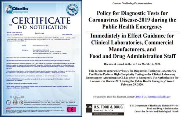 凯发K8生物作为抗击疫情的一份重要力量,3月3日新型冠状病毒核酸检测试剂已获欧盟CE认证。此外,公司已经启动美国FDA EUA(紧急使用授权)申请,且Pre-EUA已受理,根据美国FDA 3月16日最新发布的新冠肺炎相关检测政策指南,凯发K8生物新型冠状病毒核酸检测试剂盒可在美国供临床使用,服务当地疫情防控。